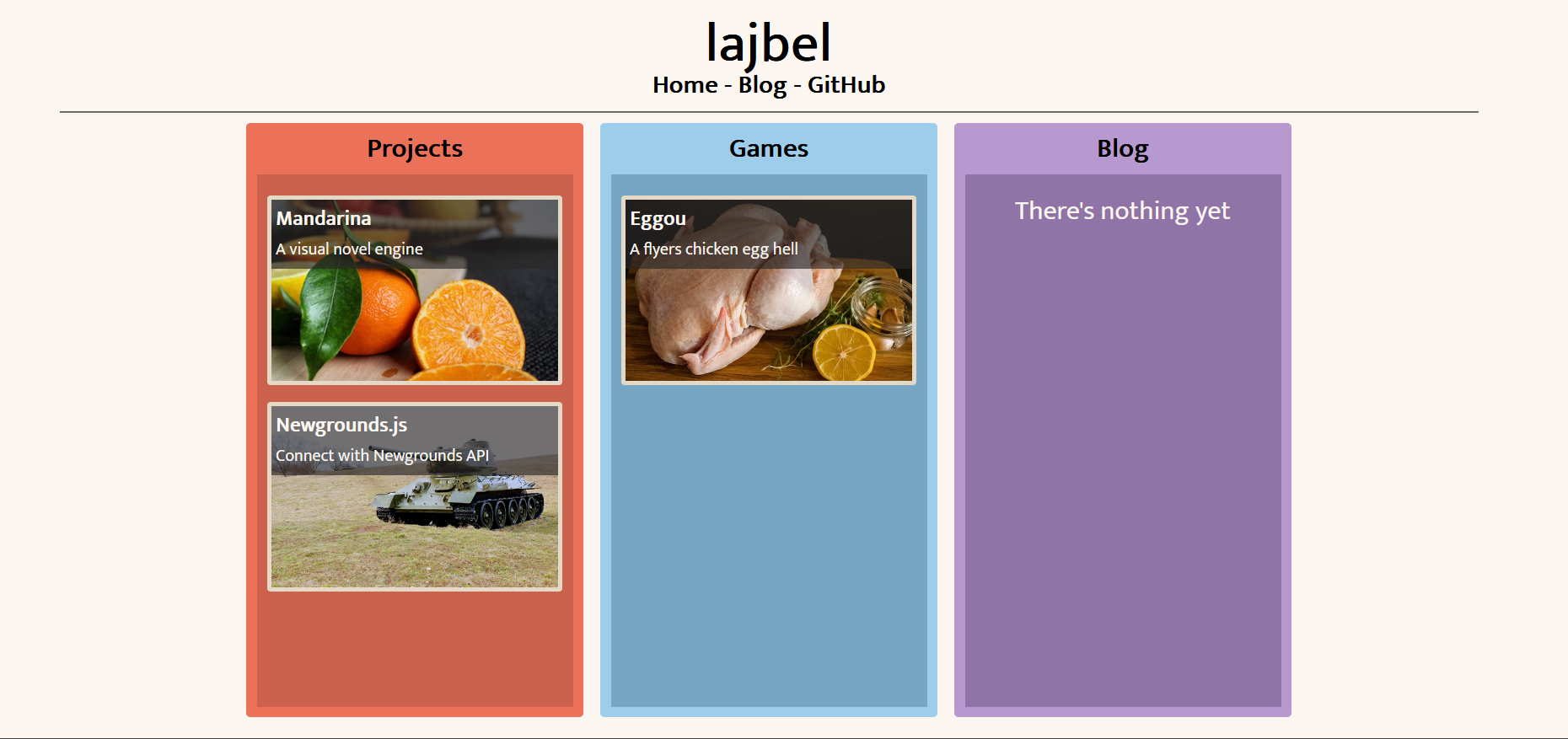I coded up the design using the framework Lume to generate static websites, and what were the boards ended up becoming a sidebar, and well, the result was the following: